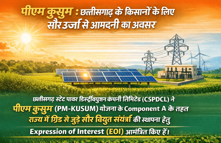 पीएम कुसुम : छत्तीसगढ़ के किसानों के लिए सौर ऊर्जा से आमदनी का अवसर पीएम कुसुम : छत्तीसगढ़ के किसानों के लिए सौर ऊर्जा से आमदनी का अवसर Read More »